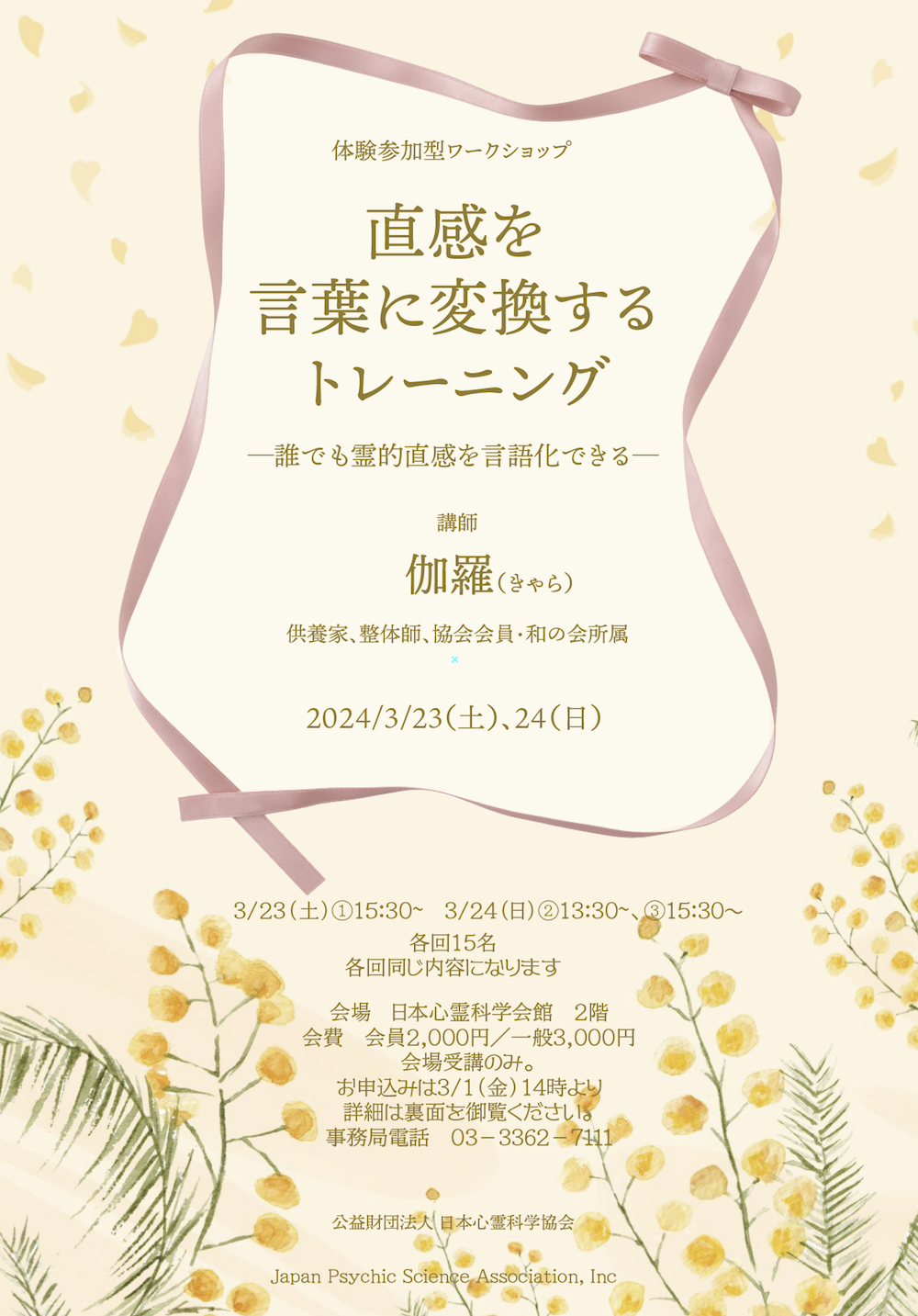 3月講演会「直感を言葉に変換するトレーニング」伽羅
