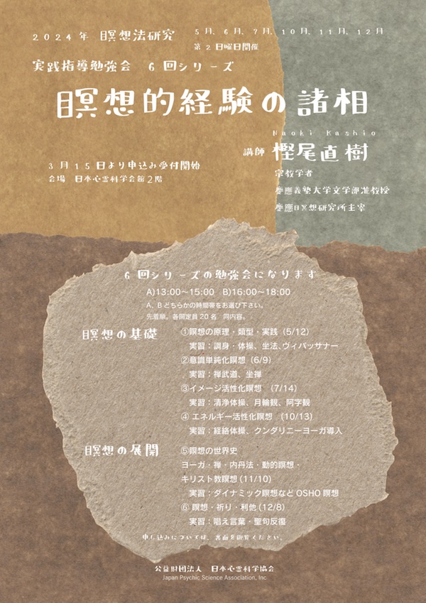 実践指導勉強会 瞑想的経験の諸相 6回シリーズ 2024年瞑想法研究