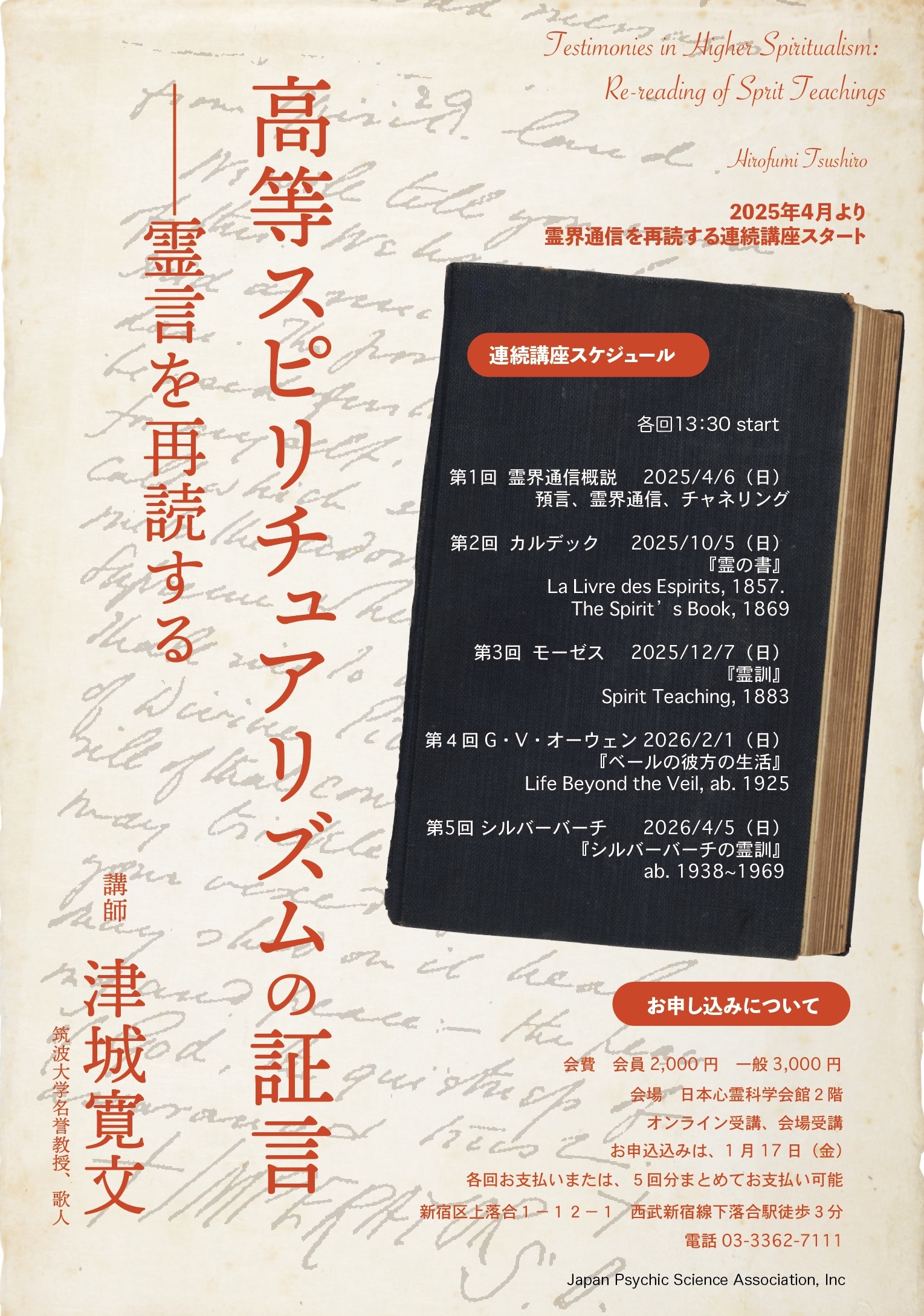 12月連続講座 津城寛文「高等スピリチュアリズムの証言─霊言を再読する」モーゼス、オーウェン、シルバーバーチ…